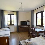 Willa Hydrograf, Roweryアパートにはキチネットも備わっています。 宿泊施設から歩いてたった5分ほどのPrzewloka / Armii Krajowejバス停からバスに乗って、ウストカの他の地域を探索することもできます。